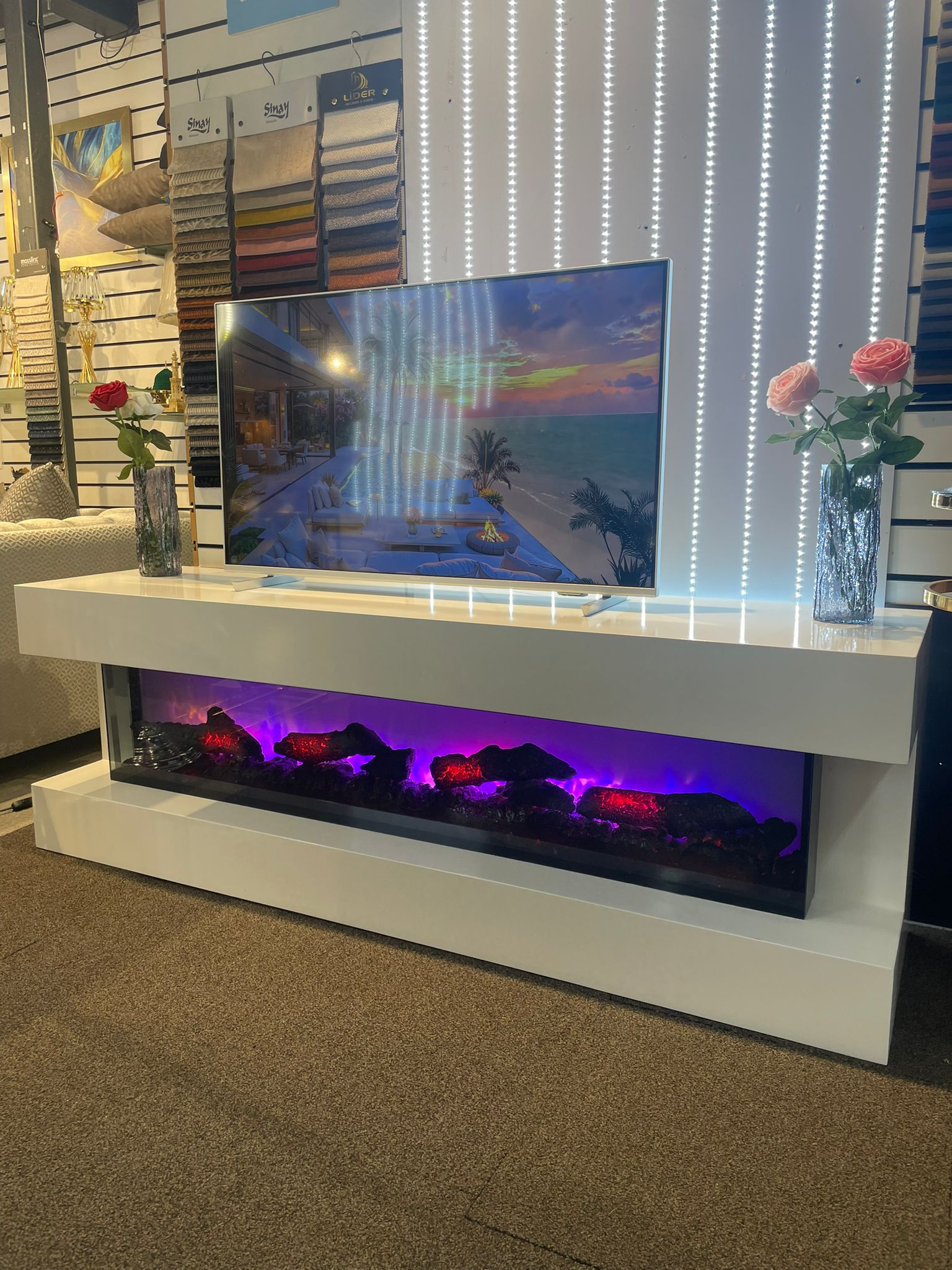 - TV UNIT WITH FIREPLACE: 180 CM LONG