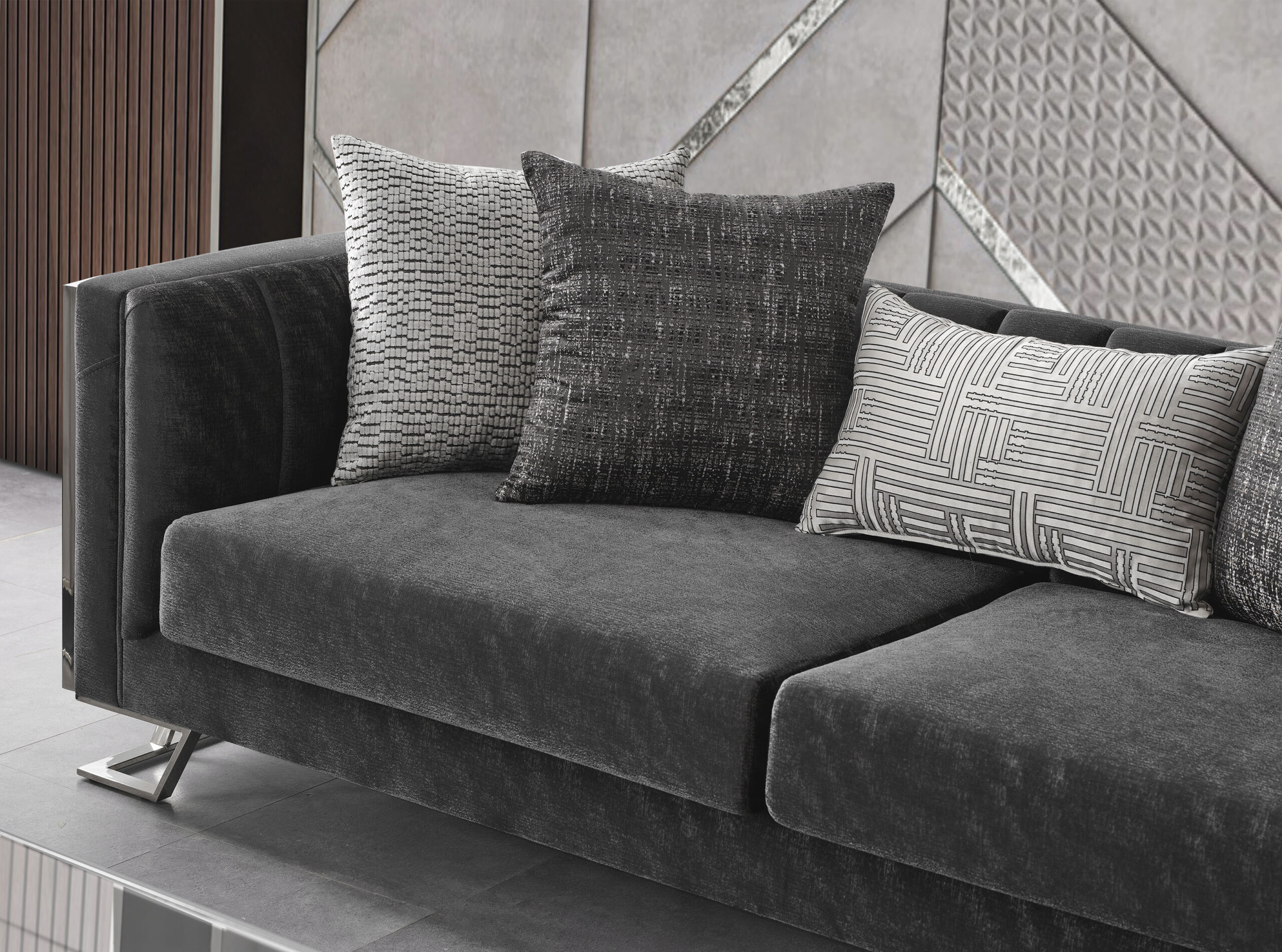 - This Girit cotton titanium metal sofa set features modern design elements including plush fabric upholstery and durable metal frames with a silver finish